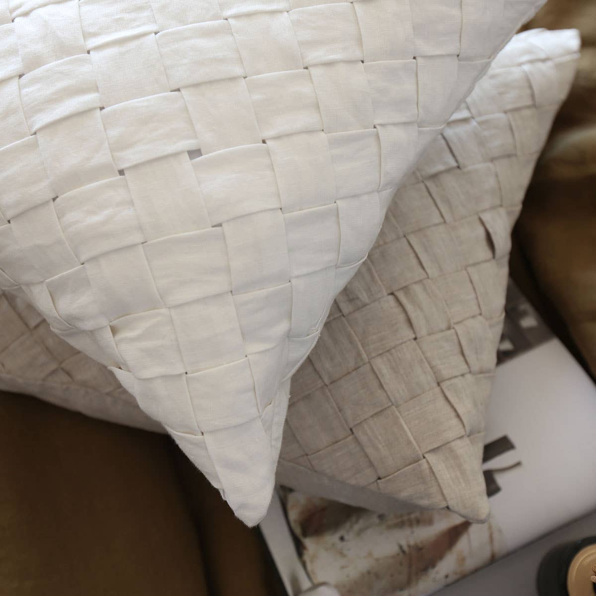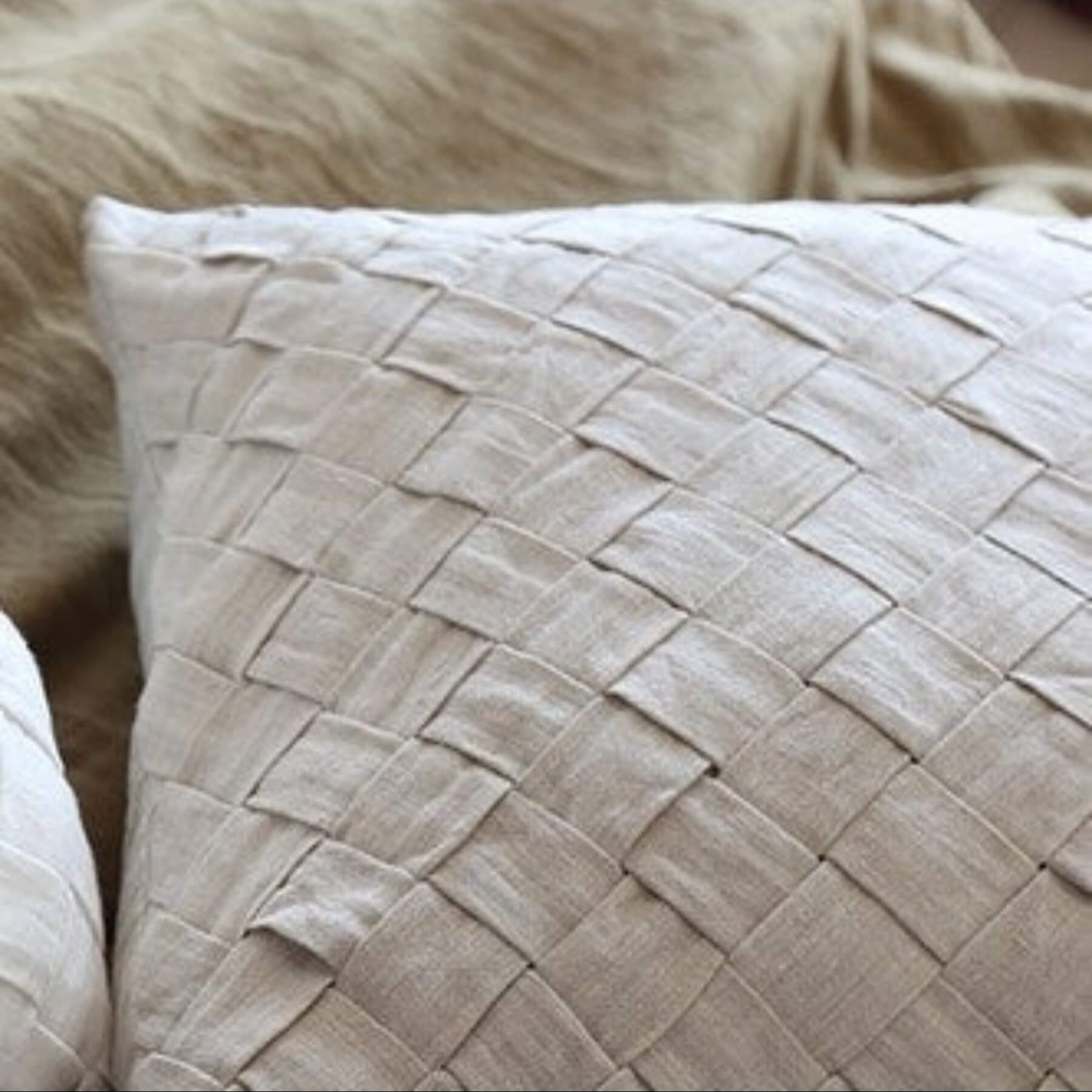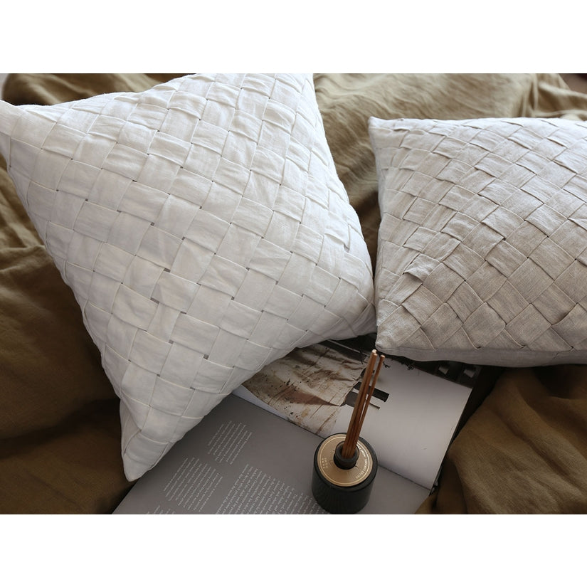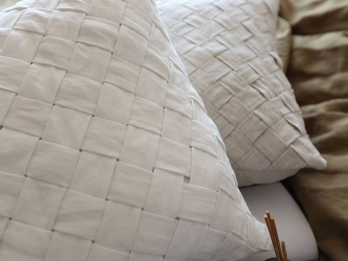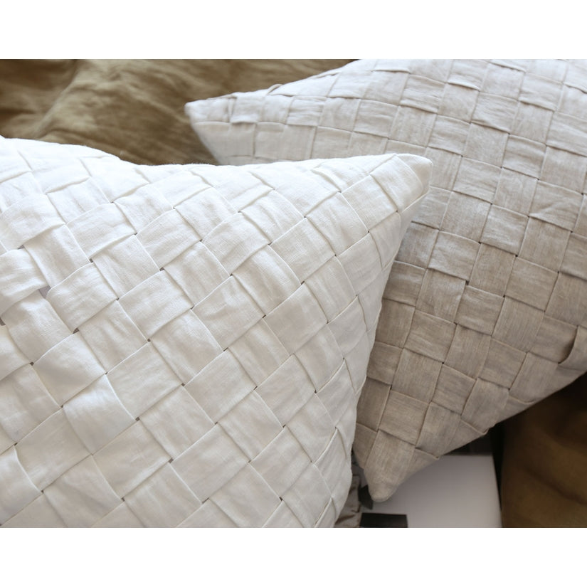 Our Basketweave pillow is carefully woven from quality linen for a timeless yet modern texture, bringing an elegant touch to the home.