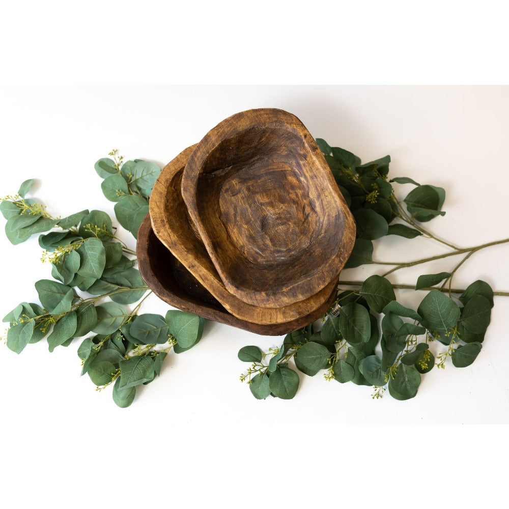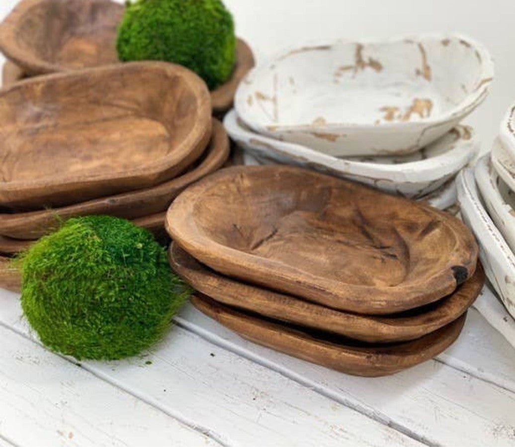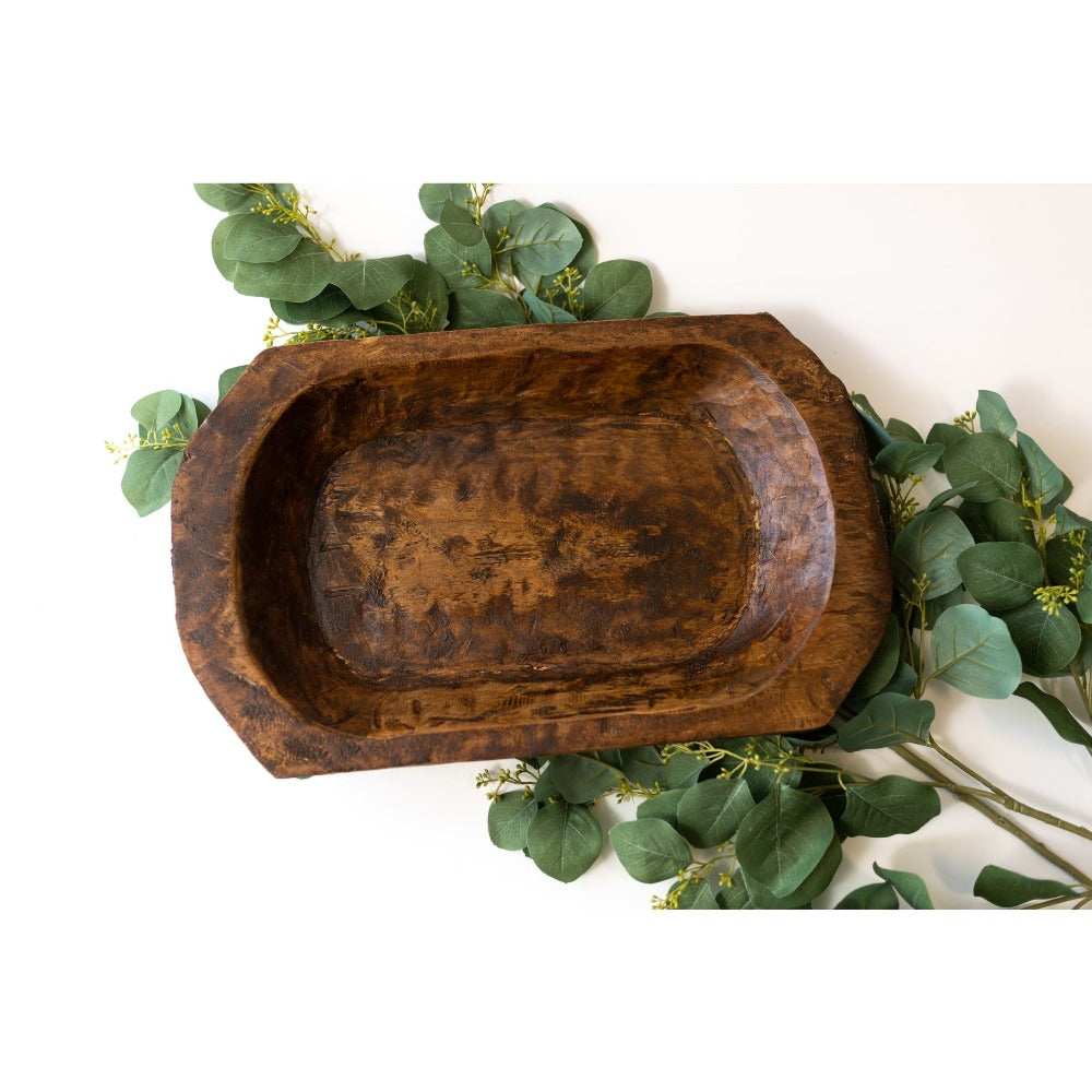 Our wood dough bowl is hand-carved from Spanish oak and finished in a rich, farmhouse brown tone. Each piece showcases the wood's organic, hand-hewn texture, with tool marks that celebrate it's artisanal craftsmanship. Style it on a coffee table, console, or shelf to bring rustic warmth and authenticity to your home.
