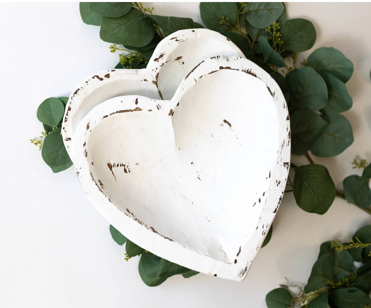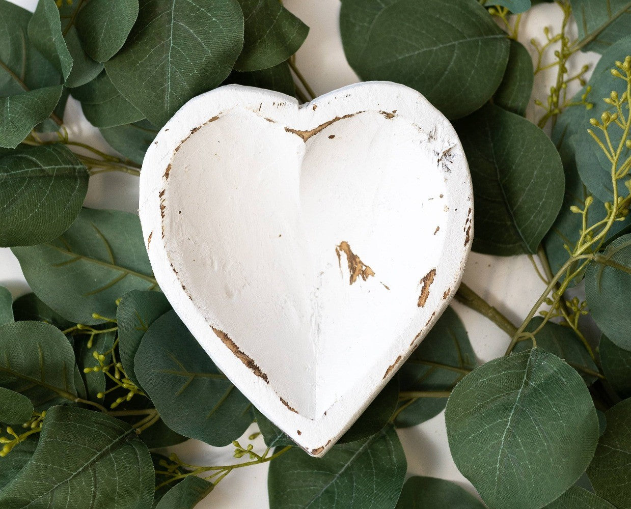 Our best-selling Heart Bowl is handcarved from Spanish oak and finished in a rustic white wash. Each piece features natural variations and marks that showcase its artisan craftsmanship. Style it on a coffee table, console, or shelf to bring authentic, handcrafted warmth to your space.
