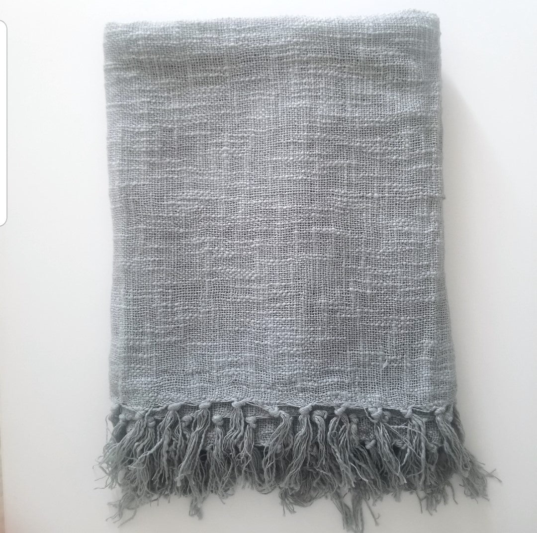 This blue-grey woven throw is crafted from 100% pure cotton offering a touch of coastal style. Its simple design and muted tone make it a versatile addition to any décor. Perfect for draping over couches, decorative ladders, or reading chairs, this blanket with tassels adds a charming touch to your living room or bedroom.